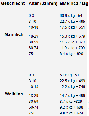 Diejenige Energiemenge die der Körper pro Tag bei völliger Ruhe bei Indifferenztemperatur 30-36 C und nüchtern zur Aufrechterhaltung seiner Funktion benötigt z. Es gibt jedoch eine allgemeine Formel die viele Experten verwenden um BMR zu schätzen also hole deinen Taschenrechner raus und schau was du daraus machen.